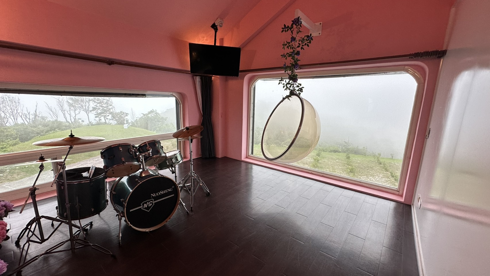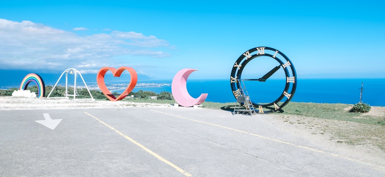花莲最美秘境-「景观玻璃屋」拥有全台湾最美360度私人景观,海拔380公尺(比101大楼高一点)最北端可以看到宜兰的乌石鼻,最南端可看到凤林镇。全花莲最美的海景、海湾、山景、峡谷、夜景、星空、日出、云彩都在花莲最美秘境-「景观玻璃屋」。玻璃屋前,以海为背景,设有六处装置艺术,能够让人发挥想像尽情拍照,较高的圆钟,还贴心备有移动式爬梯。在蓝天白云无比晴朗的天幕下,怎么拍怎么美。